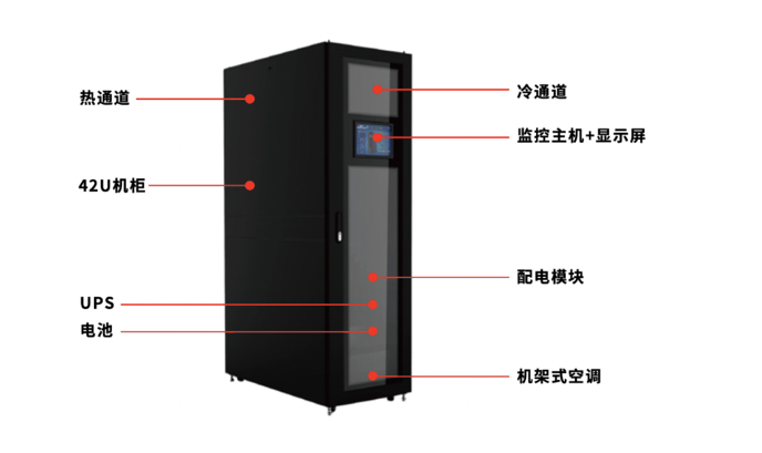 一体化集成:集成机柜系统、供配电系统、温控系统、机房管理、消防系统、综合布线等系统,高集成度设计,提供完整解决方案
